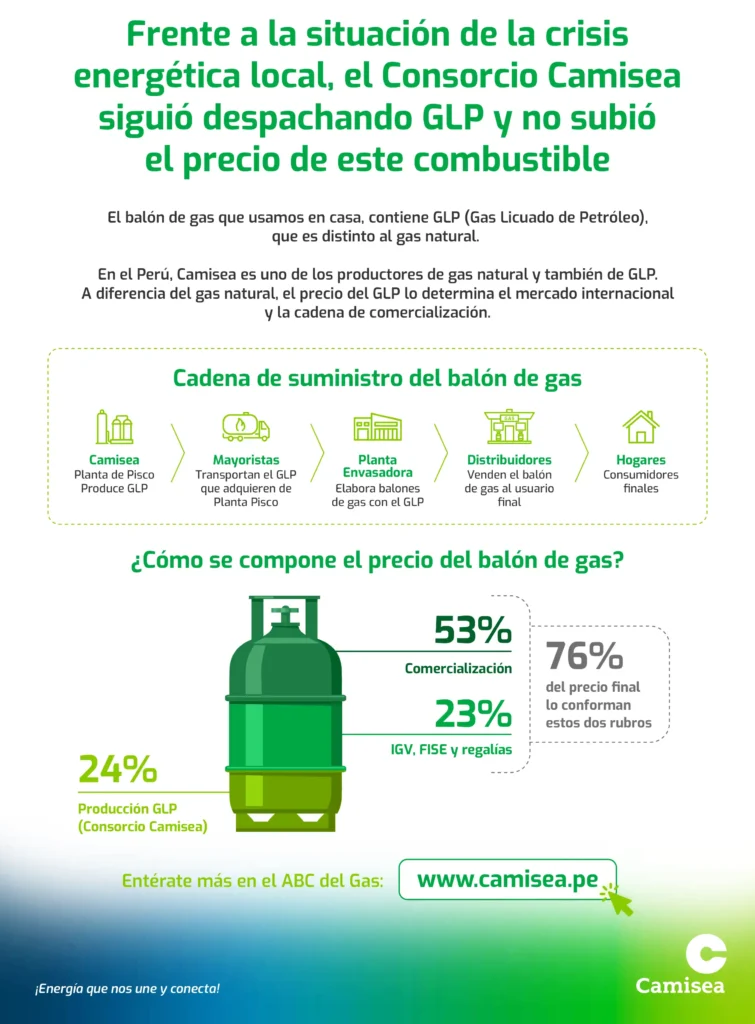 - Frente a la situación energética local que vivimos en las últimas semanas, el Consorcio Camisea siguió despachando GLP y no aumentó los precios de este combustible.