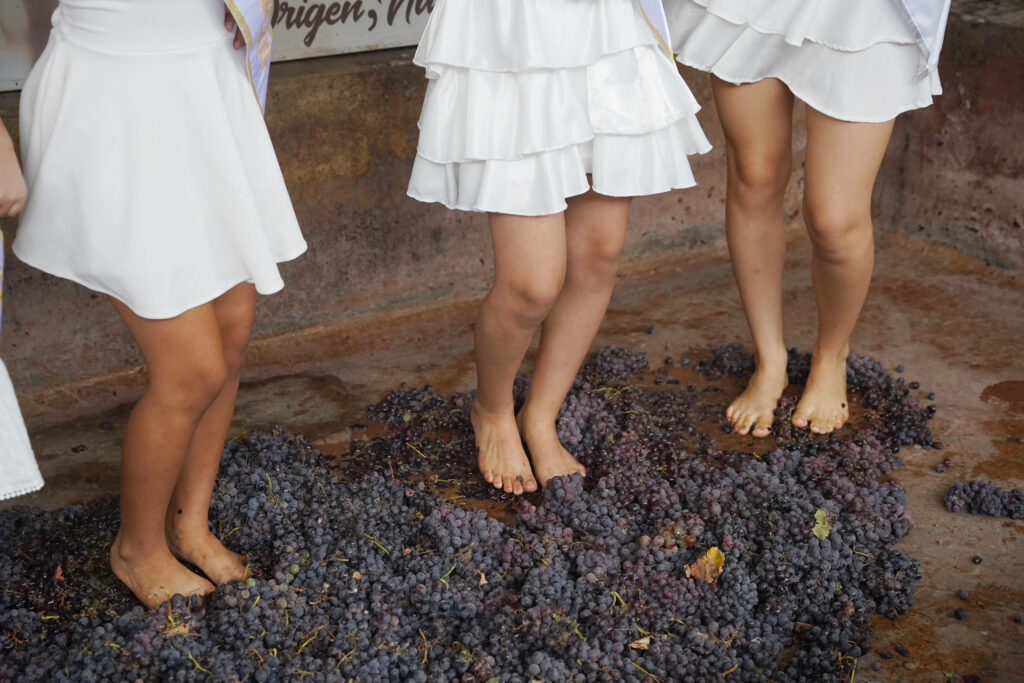 Previamente, durante la verbena serenata, la vitivinícola Pisconte realizó una demostración técnica destilando 180 litros de mosto en el alambique del campo ferial, mientras decenas de asistentes participaban en la pisa de una tonelada de uva, manteniendo y revalorando el ritual ancestral que define a esta tierra.