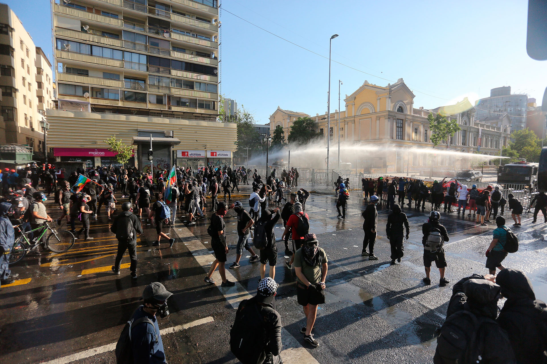 Los principales incidentes se registraron en la céntrica Alameda, una arteria del centro de Santiago, cercana al palacio presidencial, que se ha convertido en la nueva «zona cero» de las revueltas, en vez de Plaza Italia, el epicentro del estallido social contra la desigualdad que se originó en octubre de 2019.